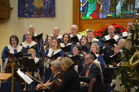 Choral music and hymns continue to fill a vital niche in modern worship services. Each week at the 11:00 am service, our Sanctuary Choir leads the congregational singing of both old and new hymns as well as some more contemporary songs. They also present anthems spanning the musical eras of baroque, classical and others, up to and including more contemporary arrangements. Rehearsals are Thursday evenings from 8:00 - 9:15 pm in the Choir Room. Please join us! For more information, contact Max Nolin.