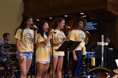 The youth praise band (6th - 12th grade) welcomes new singers and instrumentalists of all types. We rehearse on select Thursdays, 8:00 p.m., (about twice a month) in the Sanctuary and lead music at monthly youth Worship Feasts on Sunday evenings and occasionally at the morning worship services. Contact Dave Welch (davidnwelch@gmail.com)